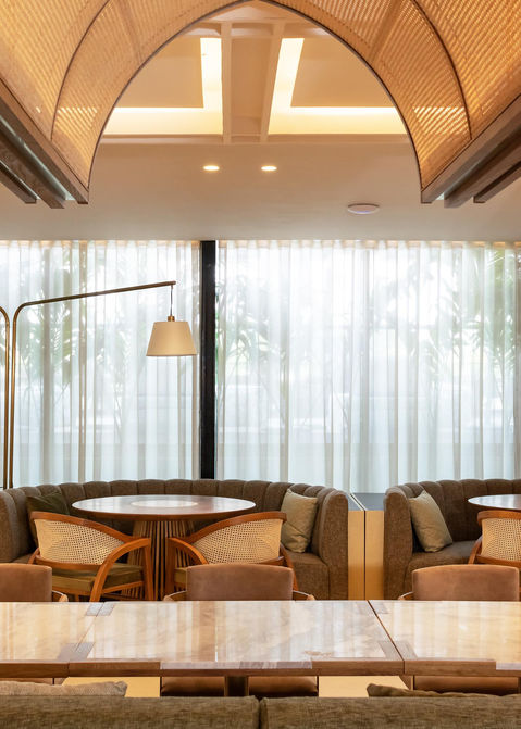 Salma’s Terrace Restaurant is a Lebanese restaurant in Victoria Island where scalloped arches, rattan-cane vaults and coffered light boxes evoke culture in a modern Lagos context. Warm oak, lime-washed plaster and patterned tiles wrap curved banquettes and a ribbed bar, while glass doors dissolve the boundary to a poolside terrace for sunset dining.